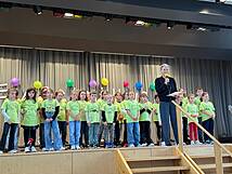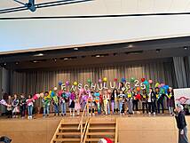 Es folgten weitere Beiträge der Schulgemeinschaft: Der Chor sorgte für musikalische Höhepunkte, und die Klasse 4c hieß die neuen Mitschülerinnen und Mitschüler mit einem eigenen Willkommensgruß willkommen.