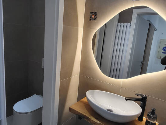 Fotos: v. l. Andreas Briem vom Gewerbeverein Mengen, Betreiberin der Pizzeria Drei König Antonietta Guarda und Bürgermeister Philip Schwaiger; der Onkel steht nach wie vor am Pizza-Ofen; das Lokal wurde während der Corona-Zeit sehr geschmackvoll in Eigenleistung umgebaut, neu sind seit kurzem auch die Sanitäranlagen (Stadt Mengen)