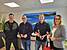 Fotos: v. l. Thomas Dau vom Gewerbeverein, Tobias Bosslet, Andreas Jahnel sowie Wirtschaftsförderin Kerstin Keppler; Innen- und Außenansicht des frisch sanierten und neu eingerichteten Reisebüros (Stadt Mengen)