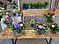 Fotos: Bürgermeister Philip Schwaiger und Wirtschaftsförderin Kerstin Keppler (rechts) gratulieren Sandra Bücheler zum Umbau; einer der flexiblen Tische, die von Herrn Bücheler gebaut wurden; Das Geschäft bietet ein umfangreiches Sortiment an Blumen und Dekorationsartikeln (Stadt Mengen)