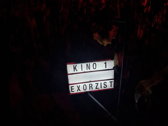 Im „Hostel“ war es noch ganz human, dann geht’s für uns weiter ins Kino 1 zum Exorzisten. Kein schöner Anblick und nichts für schwache Ohren – wir entschuldigen uns nochmals für das nicht beabsichtigte Blitzlicht. „Wer hat Angst vorm…bösen Clown“. ES und Terrifier, dessen Atem ich immer noch im Nacken spüre, harmonieren perfekt zusammen – böser Clown, guter Clown, den unser Praktikant doch mal kurz aus dem Konzept bringt, als er die blutigen Finger in einem Holzverschlag nicht nur zählt sondern auch einsammelt.