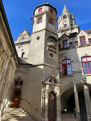 Mit dem Zug ging es zum Schloss Hohenzollern nach Sigmaringen. Nach einer kurzweiligen Fahrt erreichten die Klassen das prächtige Schloss. Dort wurden die Kinder von einem erfahrenen Personal empfangen, welches sie durch die prunkvollen Räumlichkeiten des Schlosses führte. Die Kinder erfuhren kindgerecht viel über das frühere Leben und die Architektur des Schlosses. Besonders beeindruckend waren die kunstvoll gestalteten Räume, die mit historischen Möbeln und Kunstwerken ausgestattet sind. Die Kinder hatten die Gelegenheit, die verschiedenen Bereiche des Schlosses zu erkunden, darunter auch die beeindruckende Waffensammlung.