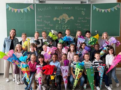 Insgesamt 95 Kinder wurden an diesem Tag in die Schulgemeinschaft aufgenommen. Unter dem Motto „Sei frech, wild, wunderbar “ erwartete die neuen Erstklässler ein abwechslungsreiches Programm, begleitet von der frechen, wilden Pippi Langstrumpf.