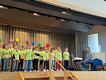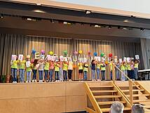 Es folgten weitere Beiträge der Schulgemeinschaft: Der Chor sorgte für musikalische Höhepunkte, und die Klasse 4c hieß die neuen Mitschülerinnen und Mitschüler mit einem eigenen Willkommensgruß willkommen.