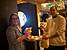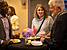 Fotos: Wirtschaftsförderin Kerstin Keppler (links) und Timo Kuchelmeister (rechts) gratulieren Orelle Nguekeng (Mitte) zur Gründung Ihres Business; Eindrücke in die Arbeit von Orelle Nguekeng; zahlreiche Gäste folgten der Einladung zum Eröffnungs-Event (Stadt Mengen und Orelle Nguekeng)