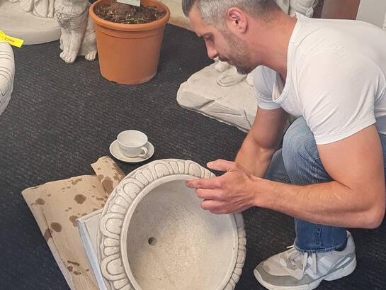 Viele Stammkunden, aber auch neue Kunden finden den Weg in sein Geschäft, um insbesondere für den Außen- und Gartenbereich dekorative Beton-Skulpturen zu erwerben. Wie der Geschäftsinhaber erzählt, hat er diese früher in Italien bestellt, nun aber bereits seit etlichen Jahren bei vier verschiedenen Firmen in Polen, da die Qualität und die Angebotsvielfalt deutlich besser sind. Insbesondere sind alle Skulpturen frostbeständig. Und es gibt nicht nur ein breitgefächertes Angebot an dekorativen Beton-Figuren, sondern auch lackierte Exemplare aus Kunstharz. Auf Wunsch werden die Skulpturen noch mit einer hochwertigen Anti-Algen-Lösung behandelt, zudem bietet Alexander Trauner eine Lieferung nach Hause an.